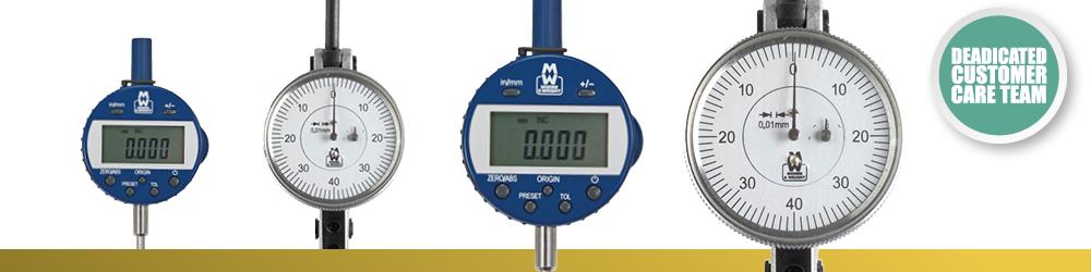 Features: ¥ Standard: ANSI B89.1.10, DIN2270. ¥ Long range - twice the range of most indicators. ¥ Automatic reversal of measuring direction. ¥ High precision fully jewelled bearings. ¥ Rotating dial. ¥ Two dovetail clamps. ¥ Carbide points. ¥ Styli length: 12mm / 1/2".