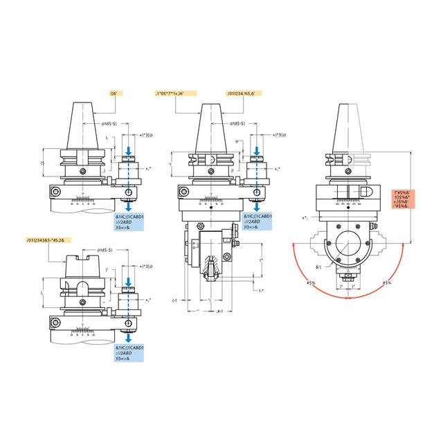 ADJUSTABLE ANGLE HEAD TYPE T32-CAT50 - OUTPUT - ER32 COLLET DIN 6499/B - CAPACITY Ø20 - M14