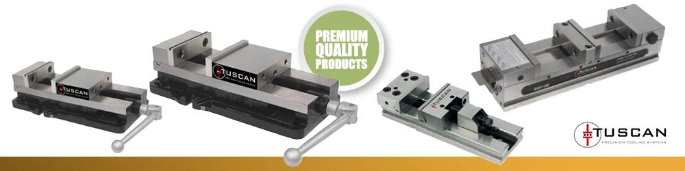 Designed with the combination of fixed and moveable jaws the Tuscan DSV series vice has the ability to hold multiple workpieces with the same clamping force. Hardened and ground, the DSV series ensures high accuracy and rigidity.